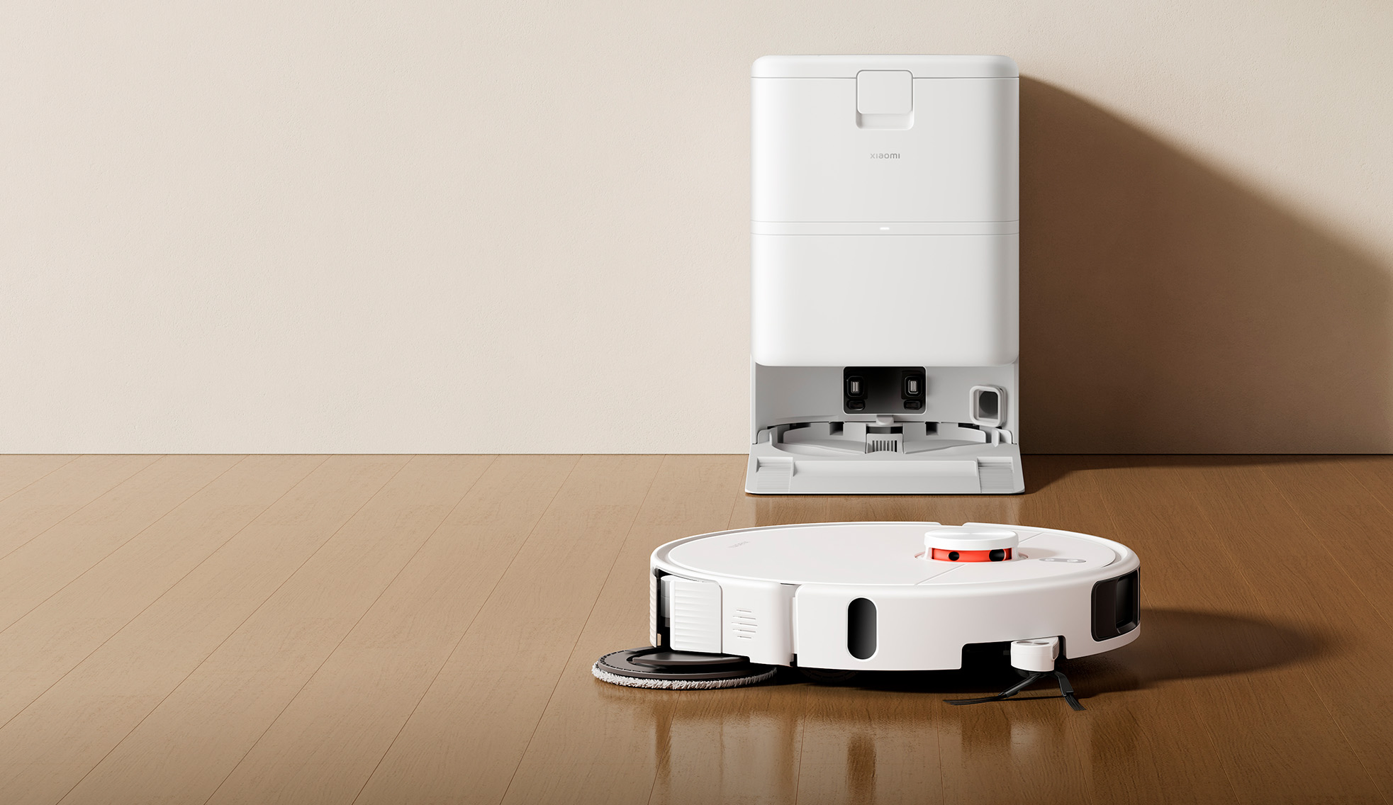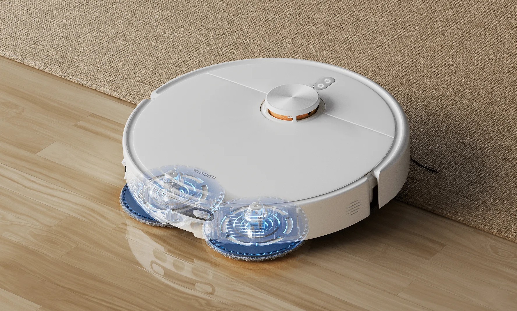 Xiaomi Robot Vacuum H50 Pro выполнен в аккуратном минималистичном стиле с белым корпусом и яркими оранжевыми акцентами. Компактная высота позволяет устройству легко заезжать под мебель и эффективно убирать в труднодоступных местах.