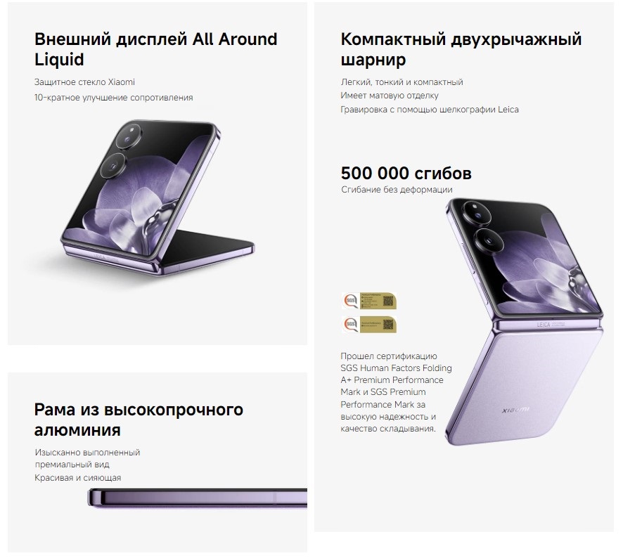 | Особенности, дополнительно | технология Dolby Atmos, поддержка Dolby Vision, оболочка Hyper OS, степень защиты IP68, 4 микрофона, поддержка HDR10+, складная конструкция, диагональ дополнительного экрана 4.01", разрешение дополнительного экрана 1392x1208 |